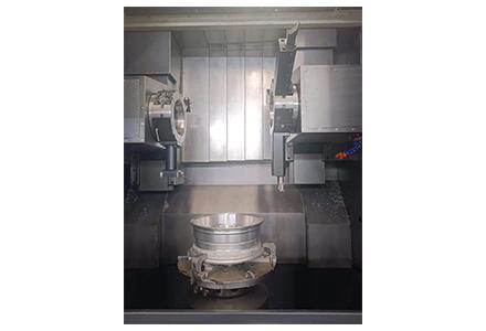 VW24T数控立式双刀架车床是针对汽车轮毂加工开发的一款数控机床。拥有单主轴双刀架,由双通道数控系统控制,两个六工位伺服刀架可各自独立对刀和进给,两个刀架可同时对轮毂进行内外圈加工,应用灵活,通用性强;一套控制控制两套进给,加工效率高,占地面积小。