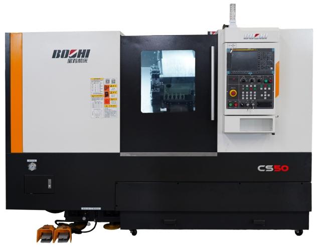 CS50差速器数控车床是一款针对汽车行业差速器加工的专用数控机床,配备B轴功能,可以三轴联动,实现专用鹅颈刀具自动进刀,进行差速器壳内球面、內阶面的加工。