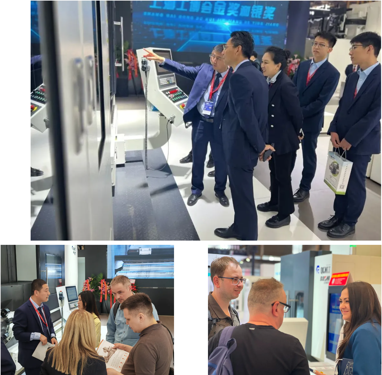 宝鸡市政协主席刘其智、副主席张德科、明涛等领导莅临公司展位。秦川集团李强总裁、宝鸡机床集团李清耀董事长重点介绍了现场展机以及公司在科技创新、产品研发、重点领域应用案例等方面情况。